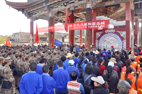 3月2日,北城街道2015年“軍民共建學(xué)雷鋒”活動(dòng)在北城高古樓開展,圍繞“用行動(dòng)保潔家園——傳承雷鋒精神 軍民共建和諧北城”為主題。來自駐地官兵、北城街道辦事處、云南維和藥業(yè)、北城中學(xué)、后所中學(xué)、北城中心等,來自各行各業(yè)的700余位志愿者匯集在一起,深入北城社區(qū),為清潔家園、美化街道環(huán)境,用實(shí)際行動(dòng)踐行為人民服務(wù)的宗旨。