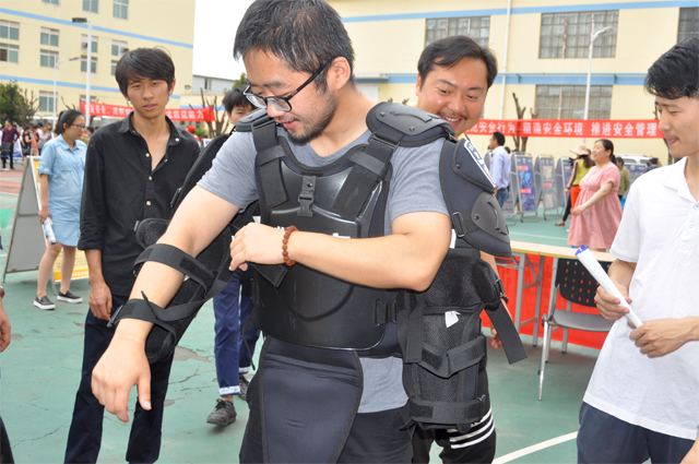 在防暴恐、反邪教知識宣傳區(qū),特警們帶來了真槍97-2,T型棍、防暴服、盾牌等防暴器械,大多數(shù)員工近距離體驗了防暴器械操作要領和正確使用方法。講解、演示活潑生動而又詳實逼真,深受員工的歡迎。